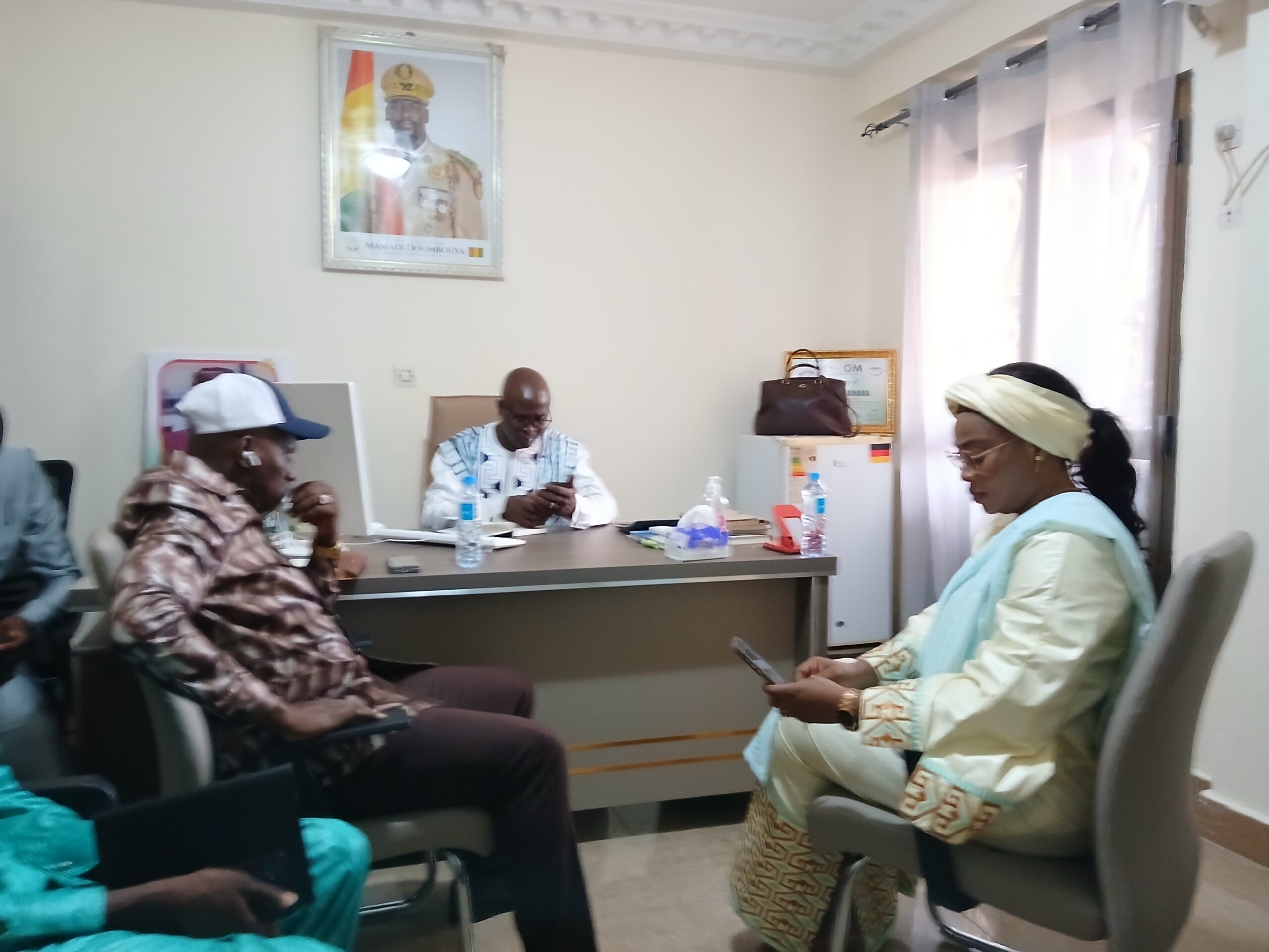 » Comme je l’ai dit au début , c’est pour vous transmettre une vive salutation de Mme la directrice générale des impôts et son adjoint.Ce local que vous trouvez aujourd’hui est dans un état parfait.Vous devriez tenir comme tel.Il ne faut pas que demain, on revient ici,qu’on ttrouve les traces sur les murs .Maintenez la propriété. le bailleur a fait sa part de contribution.,Monsieur le maire a fait ce qu’il devait faire..Vous avez le soutien de la direction.Le retour c’est quoi ? C’est le travail; Parce qu’on a estimé que vous étiez dans un réduit qui n’était pas un environnement favorable à votre épanouissement dans le cadre professionnel.